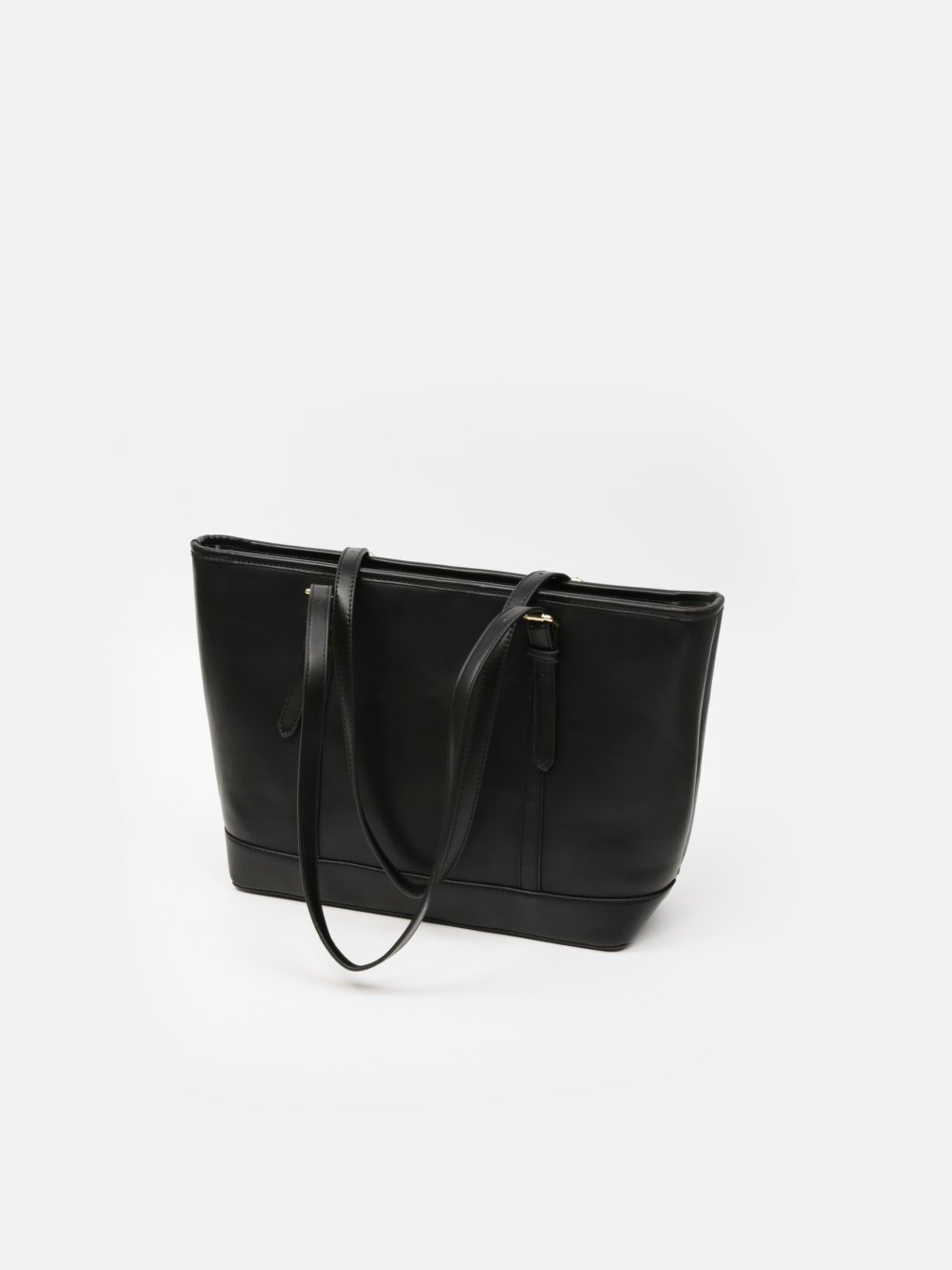 Chiếc túi tote này được chế tác từ da tổng hợp cao cấp hoặc microfiber mềm mịn, mang đến bề mặt nhẵn bóng, độ bền vượt trội và dễ dàng lau chùi. Phần quai đeo bản mảnh với khóa kim loại tone vàng tinh tế không chỉ tăng tính thẩm mỹ mà còn cho phép điều chỉnh độ dài, giúp bạn linh hoạt đeo vai hoặc xách tay. Thiết kế dạng hộp đứng rộng rãi, ngăn chính khoá kéo bảo mật, kết hợp hai ngăn nhỏ bên trong, đủ để chứa laptop 13″, sổ tay, ví, điện thoại và các vật dụng cá nhân khác