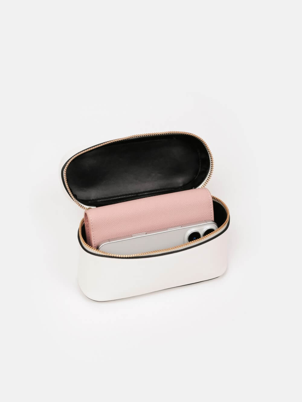 Chiếc túi Le by Lemino mang dáng hộp (vanity case) nhỏ gọn, được chế tác từ da microfiber. Phần khóa kéo đôi và chi tiết kim loại mạ vàng sáng bóng không chỉ bảo vệ an toàn cho đồ dùng bên trong, mà còn tạo điểm nhấn sang trọng. Các nàng hãy thử kết hợp chiếc túi này với đầm little black dress ôm nhẹ hoặc đầm suông dáng trơn kèm giày cao gót quai mảnh.