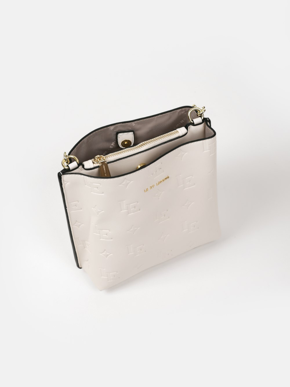 Chiếc túi LE by LEMINO này mang phom dáng bucket hiện đại với cấu trúc cứng cáp, được chế tác từ da Microfiber. Viền túi, quai cầm tay và các chi tiết móc khoá bằng hợp kim màu vàng ánh kim tạo nên nét tương phản tinh tế, vừa sang trọng vừa dễ phối với mọi trang phục.
