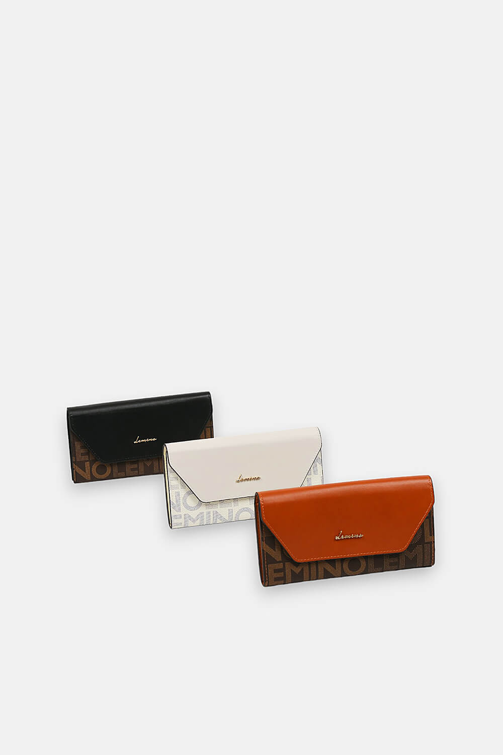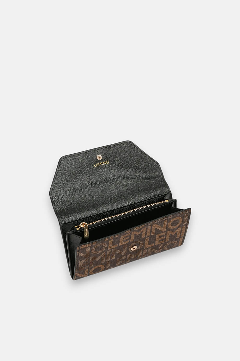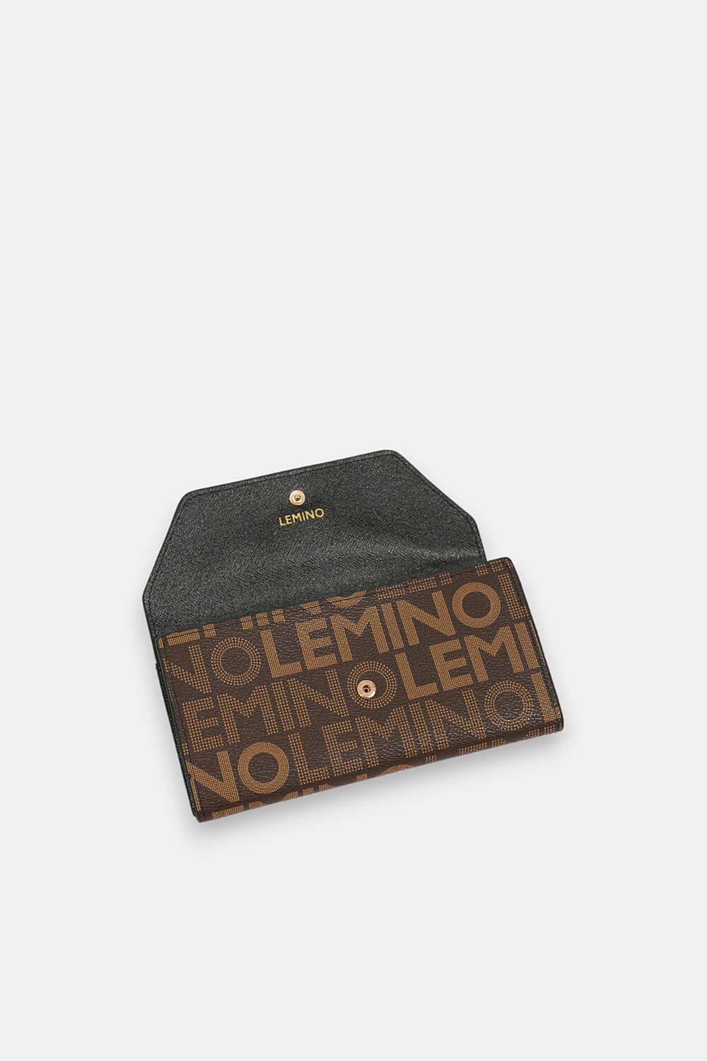 Có diện mạo thanh lịch với họa tiết Monogram trứ danh của nhà mode Lemino, nắp ví gập da miếng nguyên bản được cố định chắc chắn bở khóa bấm từ tính và tạo điểm nhấn thú vị mô phỏng như một chiếc bì thư xinh xắn.